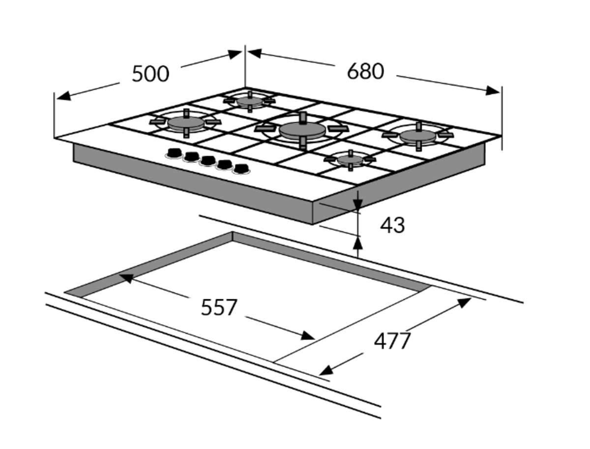 Amica 70cm 5 Burner Gas Hob - AGH7100SS