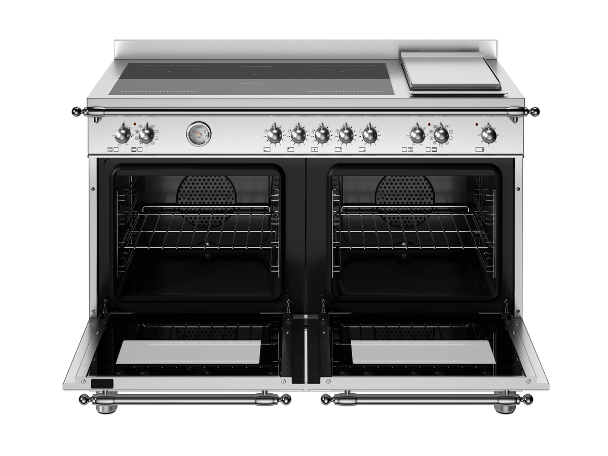 Introducing the Bertazzoni HER125I2EXT2 Heritage Series 120cm Wide Range Cooker—where timeless style meets cutting-edge performance. Designed for passionate home cooks, this induction model features five responsive cooking zones and two spacious 69L multifunction electric ovens, offering exceptional versatility. The elegant matt black finish, solid metal handles, and enamelled oven interiors bring sophistication and durability to your kitchen. Practical highlights include rapid heat-up, precise temperature control, anti-slam soft-close doors, and an A energy rating for efficient operation. A cool-touch worktop and built-in storage drawer add further convenience, making the HER125I2EXT2 the perfect blend of heritage design and modern innovation.