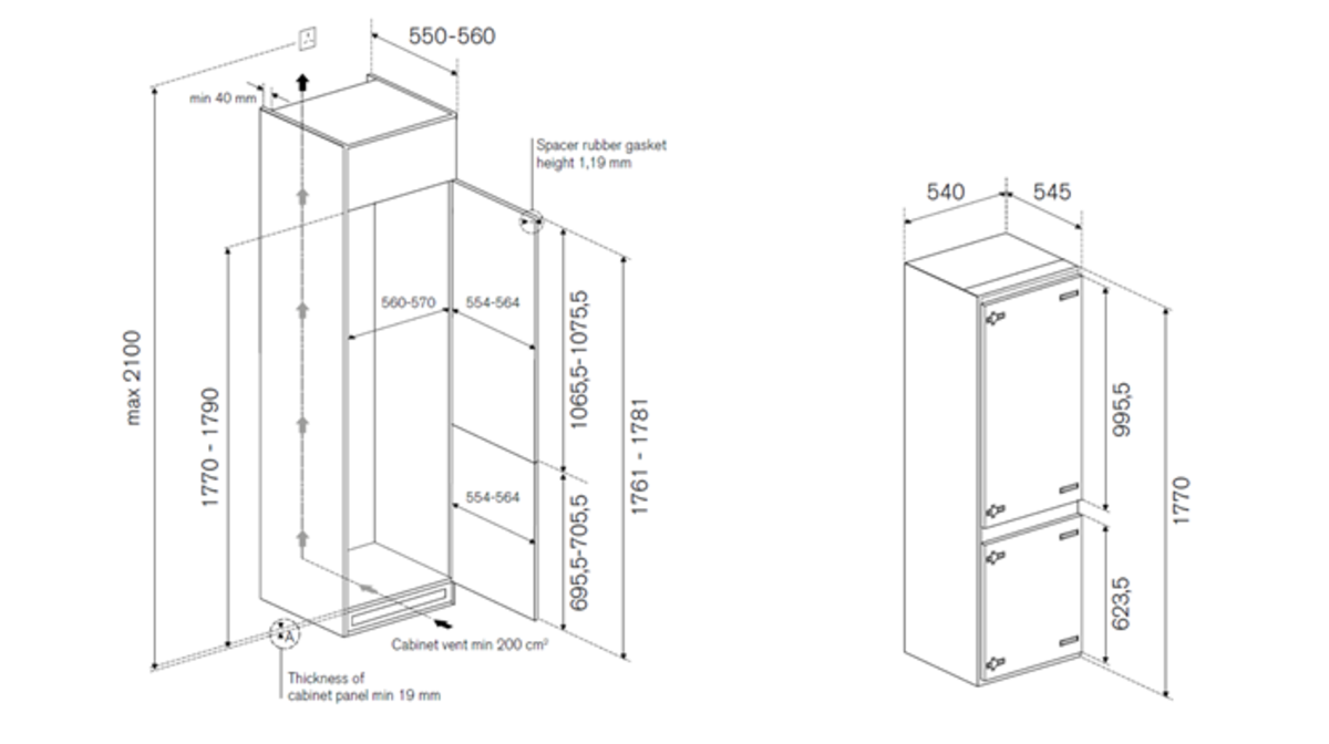 This Bertazzoni 60 cm built-in sliding door refrigerator offers 242 litres capacity split between the refrigerator and its three freezer drawers. The refrigerator is equipped with four shelves and a bottle compartment. The No Frost system of the frezeer means you will never have to defrost it. The touch controls are positioned so that adjusting the temperature is easy, while the LED lights allow you to quickly find what you’re looking for. Designed to fit seamlessly into your kitchen this refrigerator comes with the Sliding Door system. Energy class E.