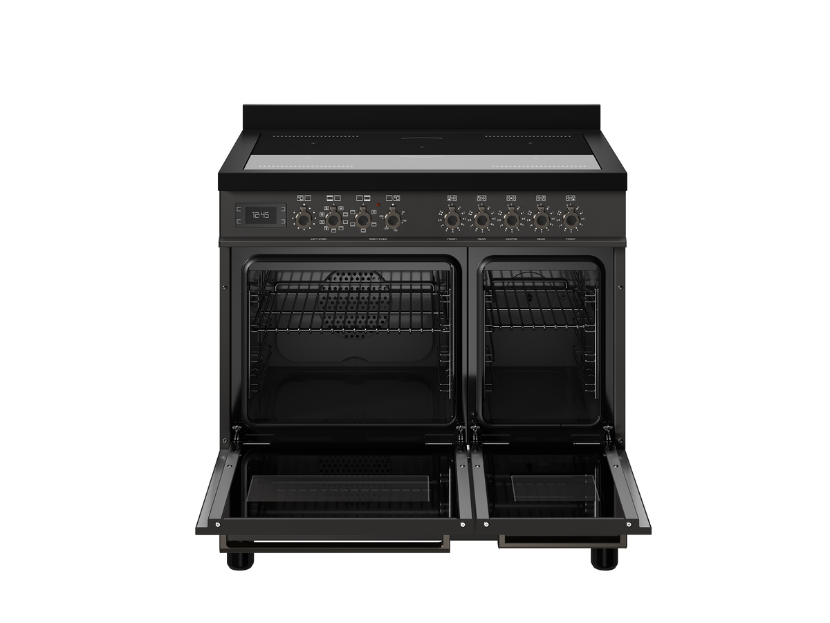 The Bertazzoni PRO95I2ECAT2 90cm Pro Series Range Cooker combines striking colour with the flexibility of twin oven cooking and the precision of induction. Designed for kitchens where performance matters just as much as appearance, this premium Bertazzoni range cooker offers a 107L total capacity, 11 main oven functions, 5 induction cooking zones, Air Fryer Basket, grill, timer and A-rated oven performance.