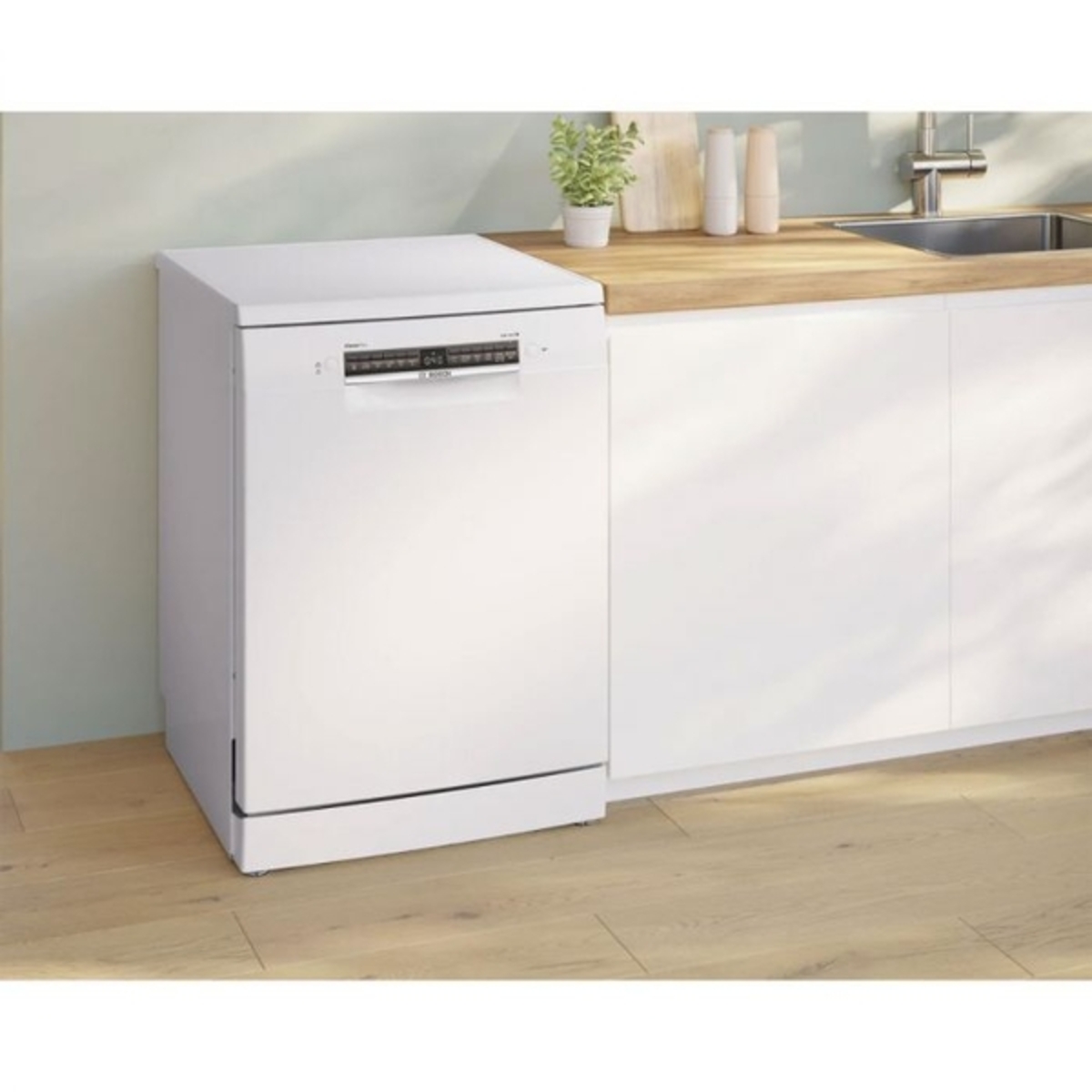 Washing your dirty dishes has never been easier, thanks to the Bosch SMS4EKW06G. With room for up to 13 place settings as well as six programmes and four temperature settings to choose from, you’ll find the perfect combination for your load. Featuring ExtraDry, this option dries your dishes using higher temperatures during the rinse cycle, and with a longer drying phase, your crockery will be ready to put away. Reach for the SpeedPerfect button to get dishes cleaned in up to 65% less time. If that’s not all, the Silence 50° option reduces noise levels to the lowest minimum possible. What’s more, with Home Connect you can start cycles, add favourites, and troubleshoot all from an app on your smartphone or tablet – just connect to your Wi-Fi to get going.
