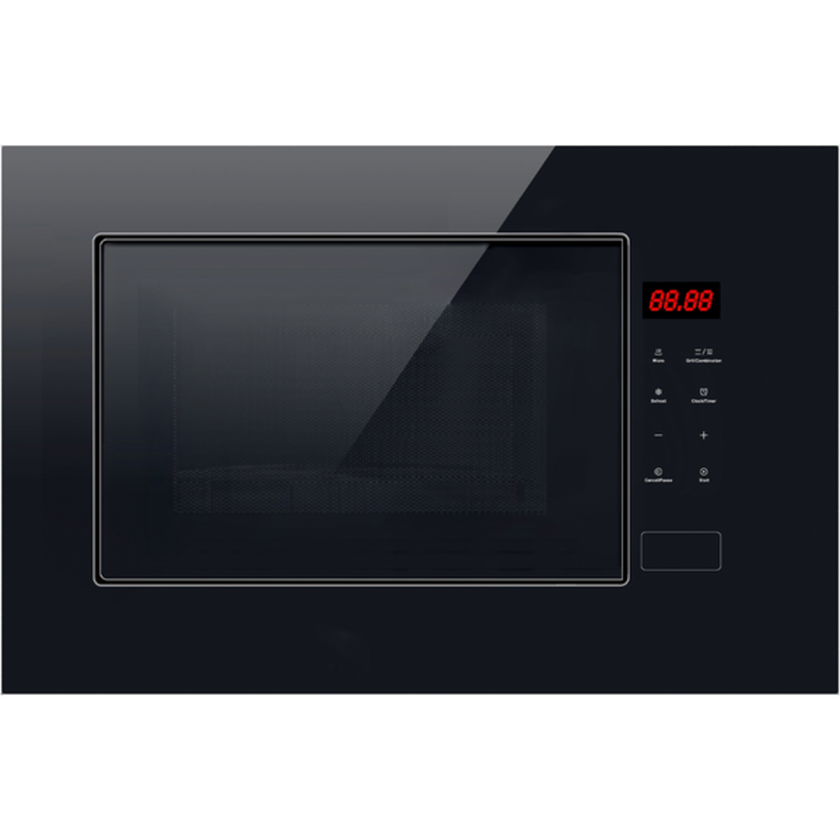 The CATA 300 60cm Black Fully Built-In Microwave & Grill brings quick, reliable and versatile cooking to modern kitchens. With a practical 20-litre capacity, it handles everyday meals, reheating and snacks with ease, while the sleek black glass front and door blend seamlessly with contemporary appliance styling. The touch control panel with a clear red LED display keeps operation simple and intuitive.