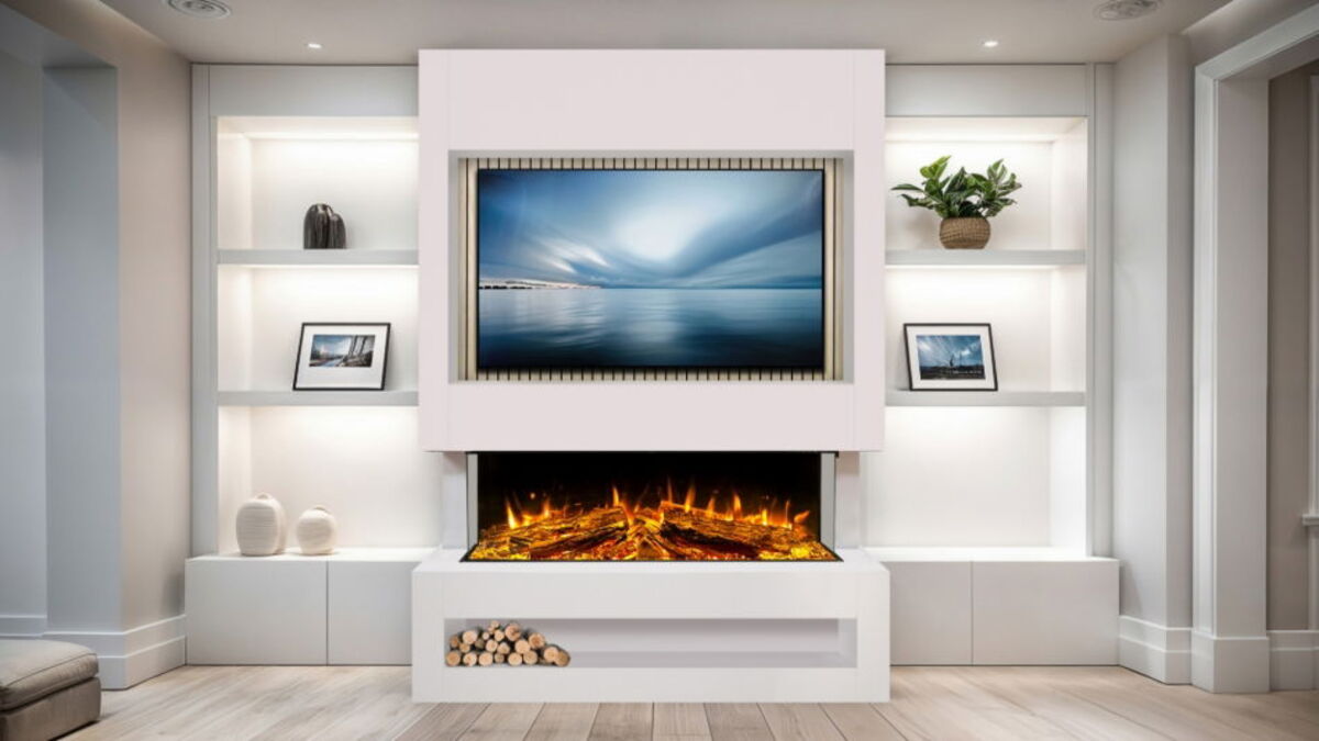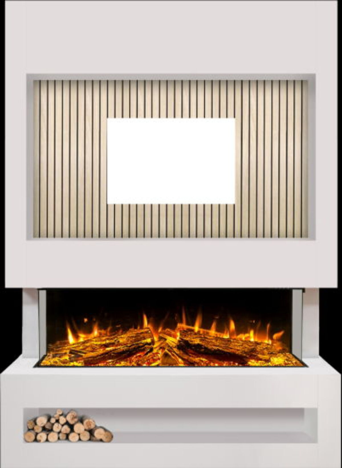 The Celsi DLX Media Wall is an impressive, pre-built electric-fire suite and a remarkable addition to any living space. Crafted in the UK using the highest-quality premium Egger boards in smooth white with oak-finished acoustic paneling. Our design incorporates a log storage compartment, and a TV recessed compartment with a cut-out rear panel to flush-mount your TV. Whether aiming for cosy ambiance or high-end luxury, this DLX electric fireplace offers a smart and modern home solution. The media wall suite arrives in three parts, requiring minimal assembly with a simple step installation guide.