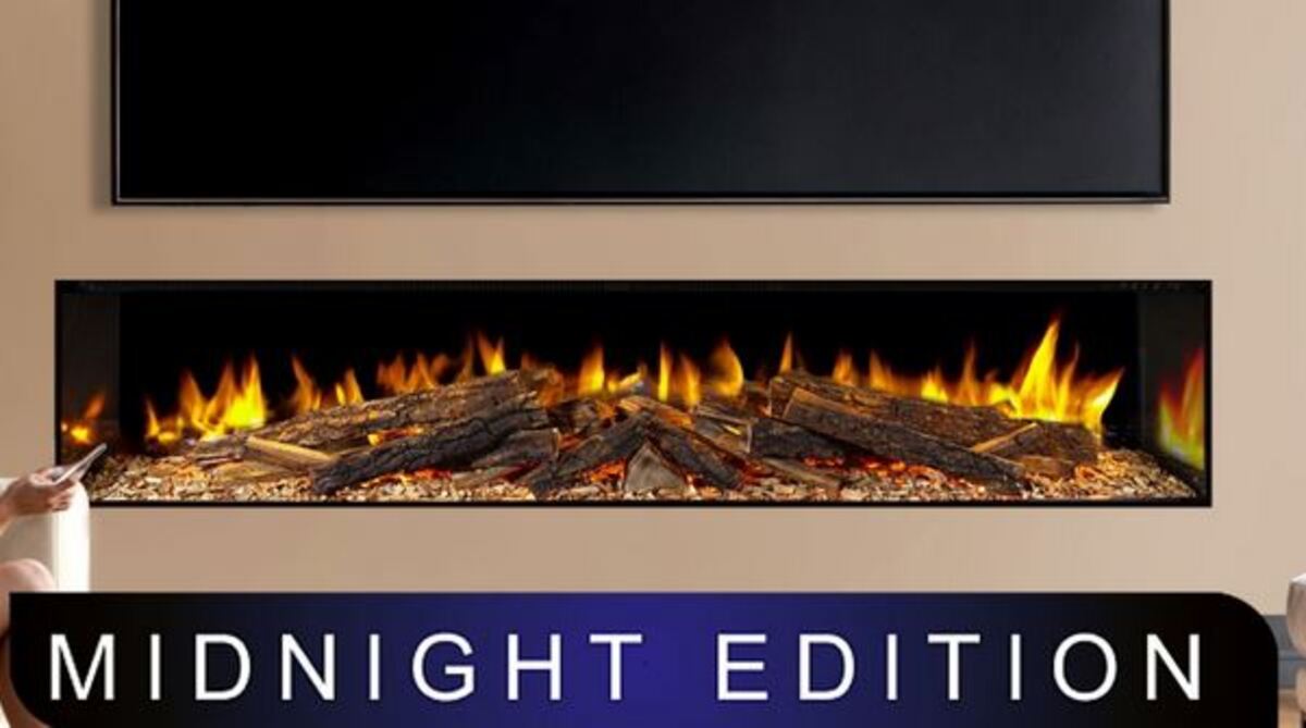 DLX MIDNIGHT EDITION The Midnight Edition is a visual triumph and an exclusive standard feature on every DLX 3-Sided Media Wall Fire, marking the ultimate evolution in electric fireplace realism. Engineered using specialised rear screen dark glass, this premium feature maximises contrast, intensifying the dynamic flame visuals and making our signature fuel bed more vibrant than ever before. The result is a truly immersive viewing experience that anchors your media wall with unmatched sophistication and depth.