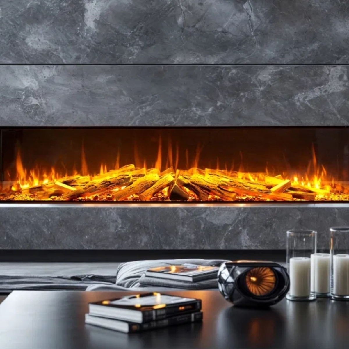 The feature-rich DLX 2000 media wall electric fire is equipped with 16 pre-set colour modes and over 100+ multi-colour customisation options, allowing you to tailor the flames, embers, and logs to your mood. The immersive Animation mode smoothly transitions through the colour spectrum, creating a dynamic visual experience. Built-in smart home compatibility means you can control the fire via Amazon Alexa or Google Assistant, making it the perfect blend of luxury, technology, and convenience.
