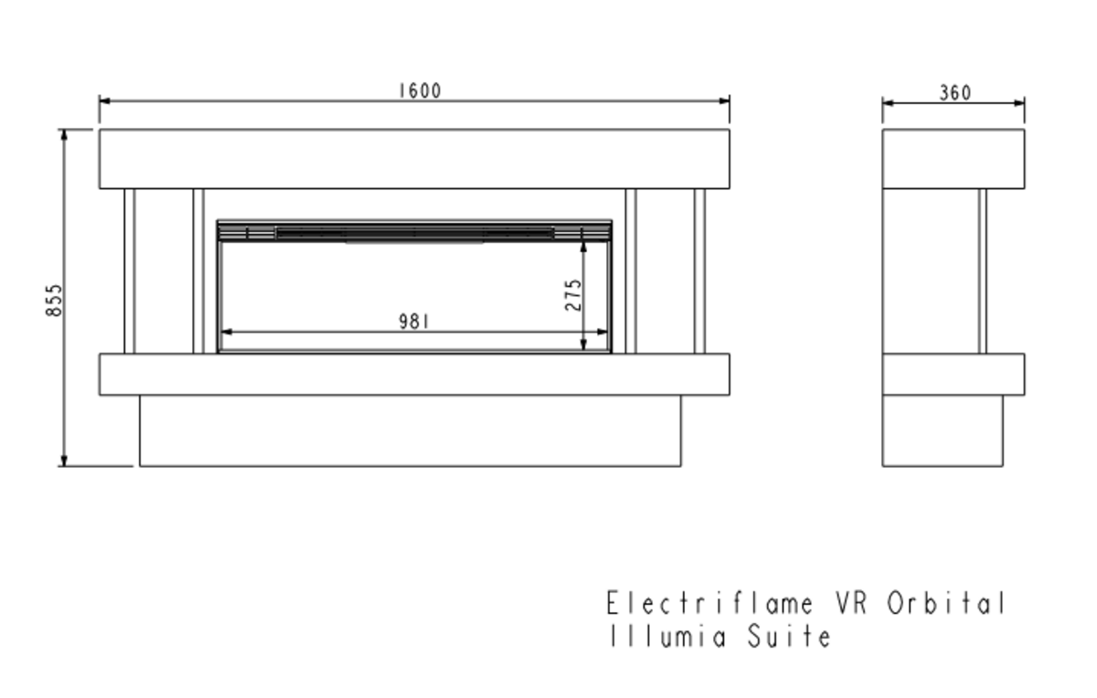Electriflame VR Orbital 1000 is a glass-fronted electric fire suite delivering indistinguishable real flame sophistication. E-VR patented technology raises the appearance and functionality of electric fires to a new level.