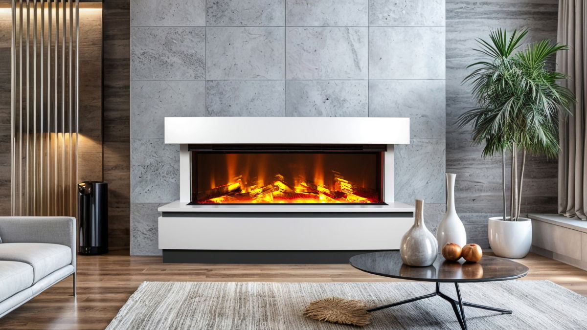 CELSI E-VR Sinatra s1000 in White and Thunder Grey is a “place down plug-in” electric Smart suite with hassle-free installation. Next-generation Flame Projection technology creates the flame illusion to the front, the centre, and the rear of the fuel bed. This simulates a natural log fire effect that raises the appearance and functionality of electric fires to a new level.