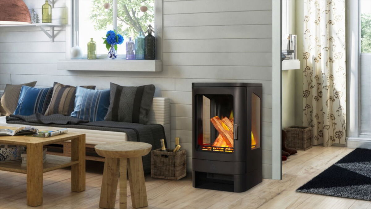 CELSI Electristove VR Spectre is a modern 3-sided glass windowed designer stove featuring prominent campfire styled split logs that are viewable from all angles of your room. E-VR Flame Projection Technology places the flame illusion to the front, the centre, and the rear of the fuel bed. This creates a totally natural log fire effect.