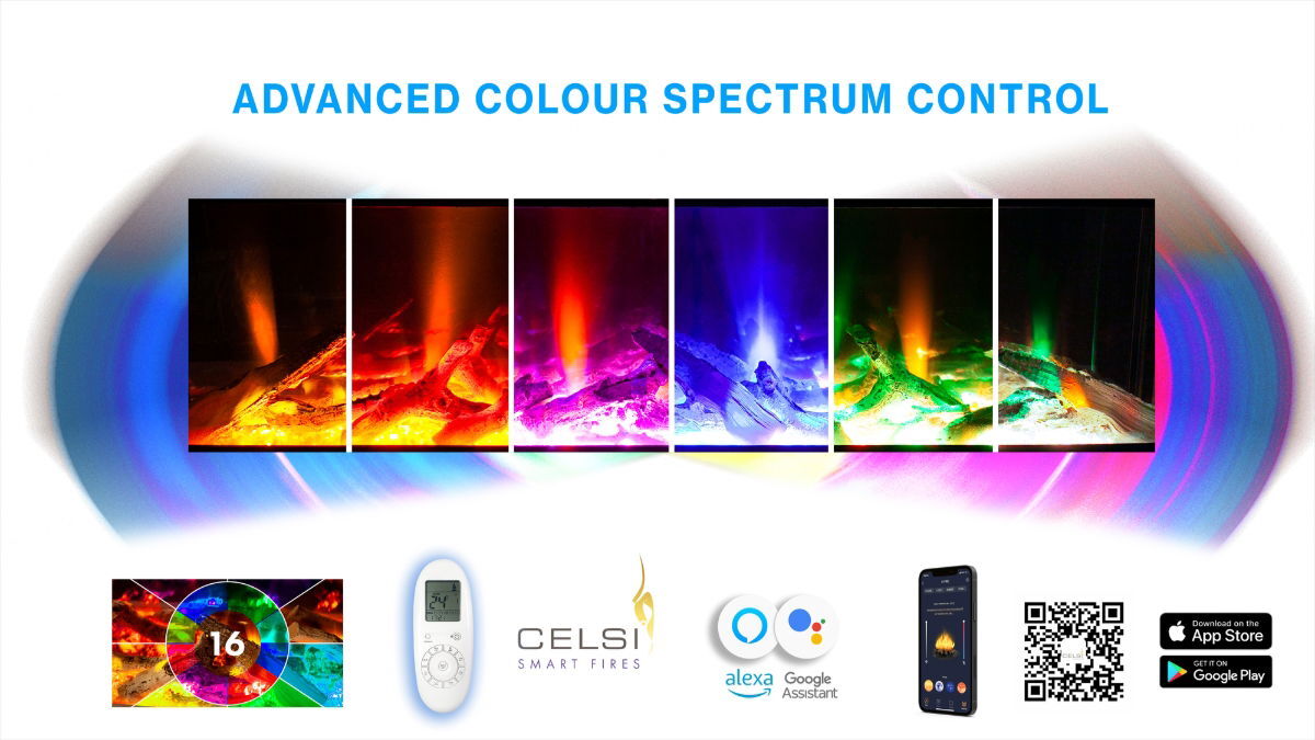 COLOUR The Holographic Smart Stove has 16 pre-set ambient colour modes, and over 100+ multi colour combinations to customise the light ambience on flames, logs, and ember beds. To simplify your choice you can relax with a slow cycle through the colour spectrum in our fully immersive Animation mode.