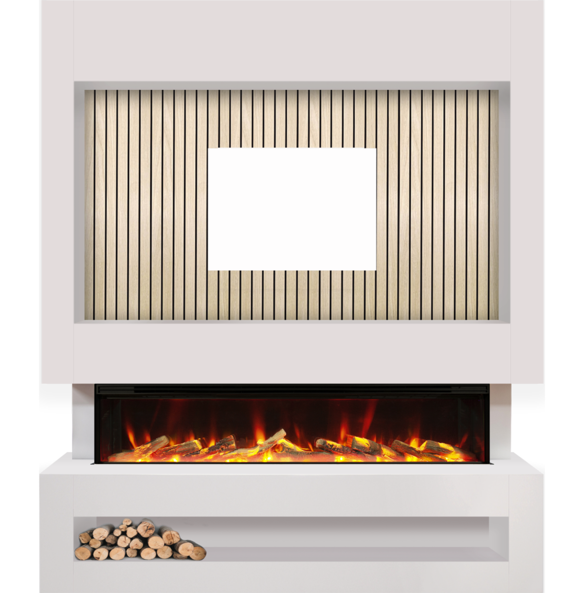 The Celsi E-VR Mediawall is a stunning pre-built electric fire suite that brings a striking touch to any living space. It features smooth White premium boards styled with Acoustic Oak panels, creating a fresh and modern look. For a luxurious feature fireplace that requires minimal assembly and delivers maximum results, choose Celsi to enhance your living space.