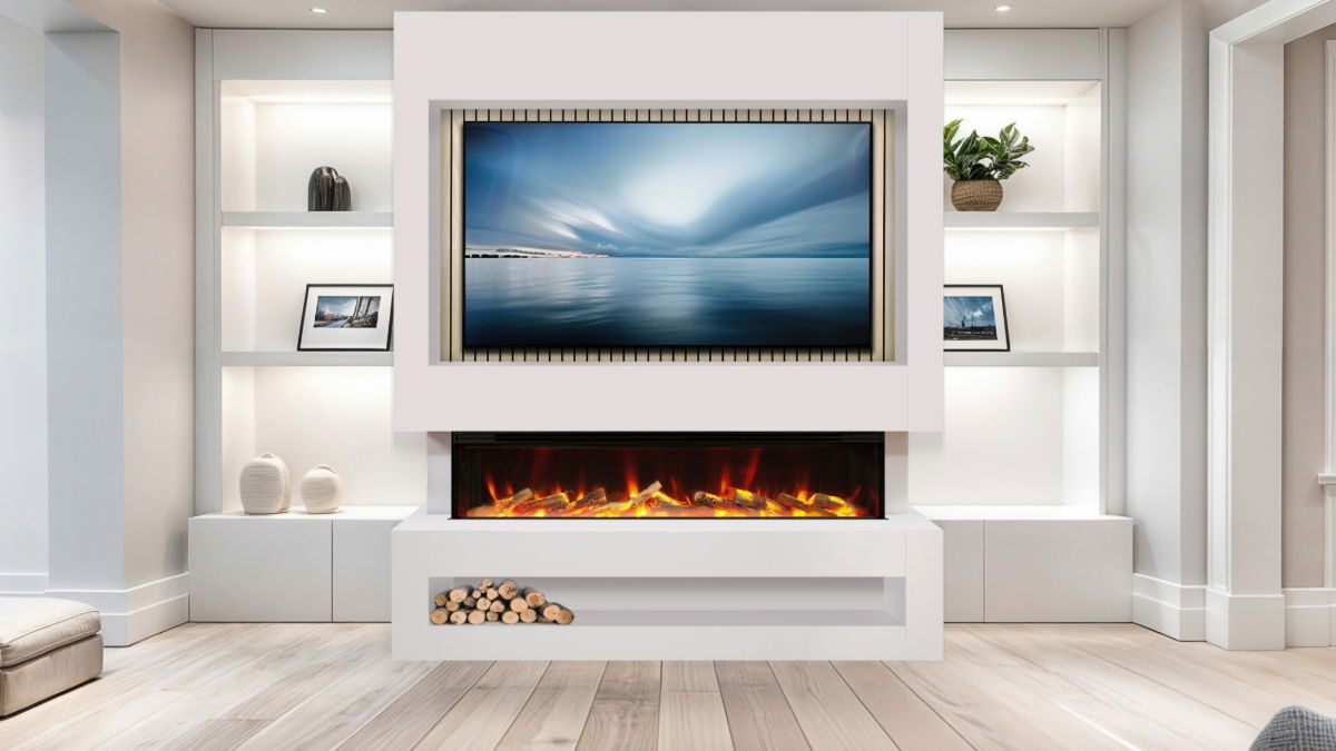Our package content includes Media Wall and E-VR s1600 Smart Electric Fire. Simple to install with three easy-to-assemble parts.