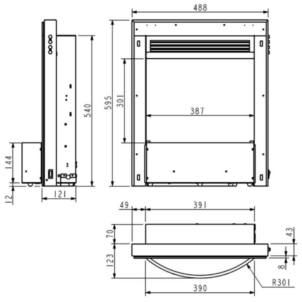 Dimensions: mm H.595 x W.488 x D.123 Heat Output 0.8kW - 1.5kW