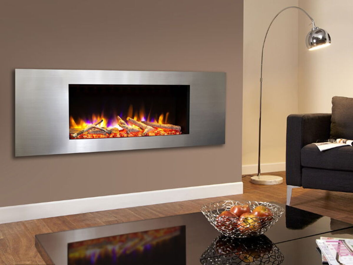 This fire has a contemporary steel satin silver finished fascia that is sized with perfect proportions to offer you a fully featured wall-installed fireplace.