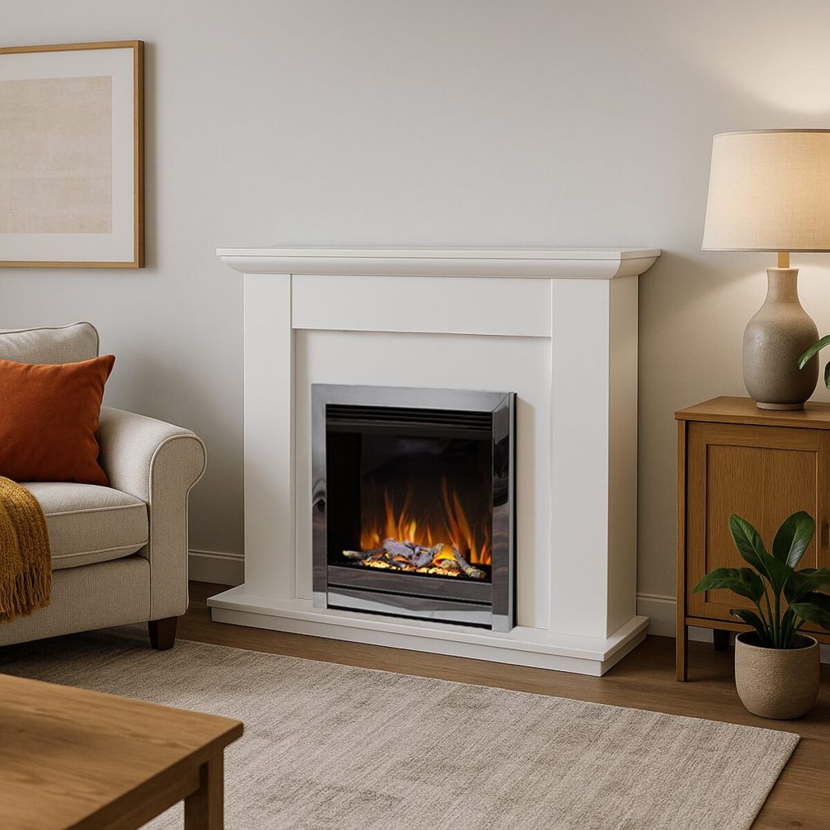 Control is effortless thanks to remote and manual controls, as well as full smart home compatibility. Adjust flames, heat, and settings using your smartphone or hands-free via Amazon Alexa or Google Assistant. When heat is required, the discreetly concealed heater provides a choice of 750W or 1500W, offering efficient warmth without compromising the clean, minimalist aesthetic.