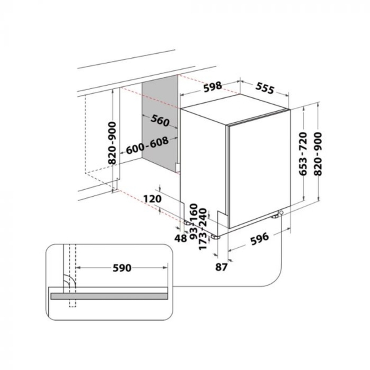 - (H)820 x (W)598 x (D)555mm