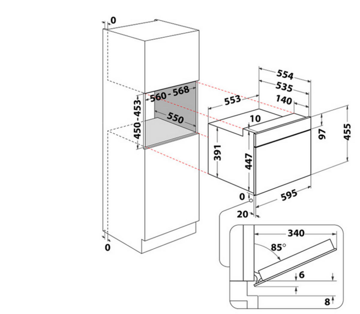 | Door opening mode | Drop-front with handle |
