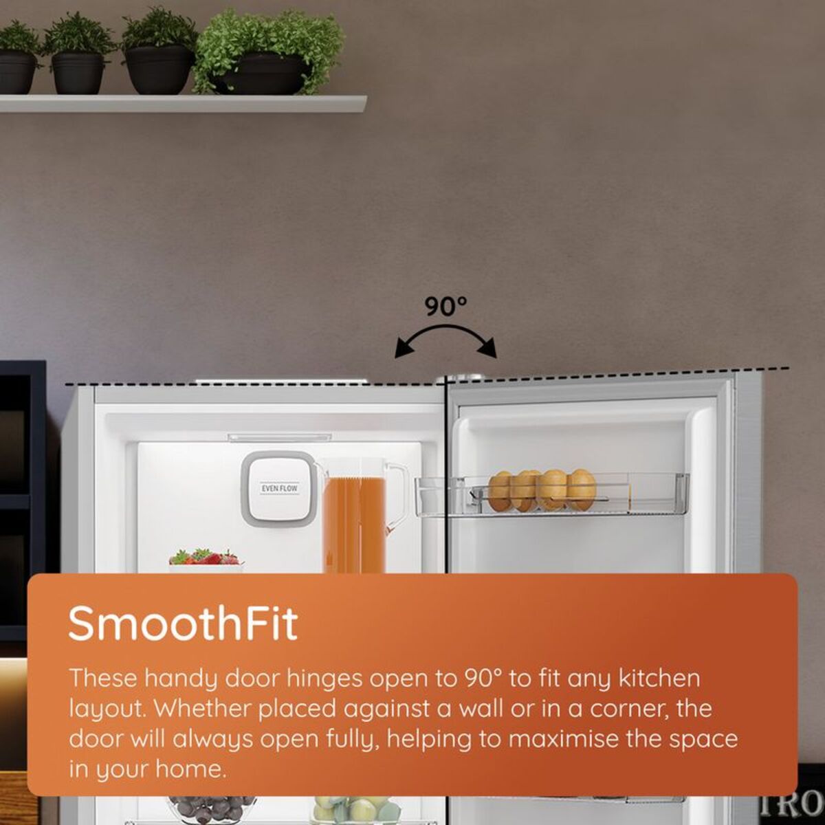 These handy door hinges open to 90° to fit any kitchen layout. Whether placed against a wall or in a corner, the door will always open fully, helping to maximise the space in your home.