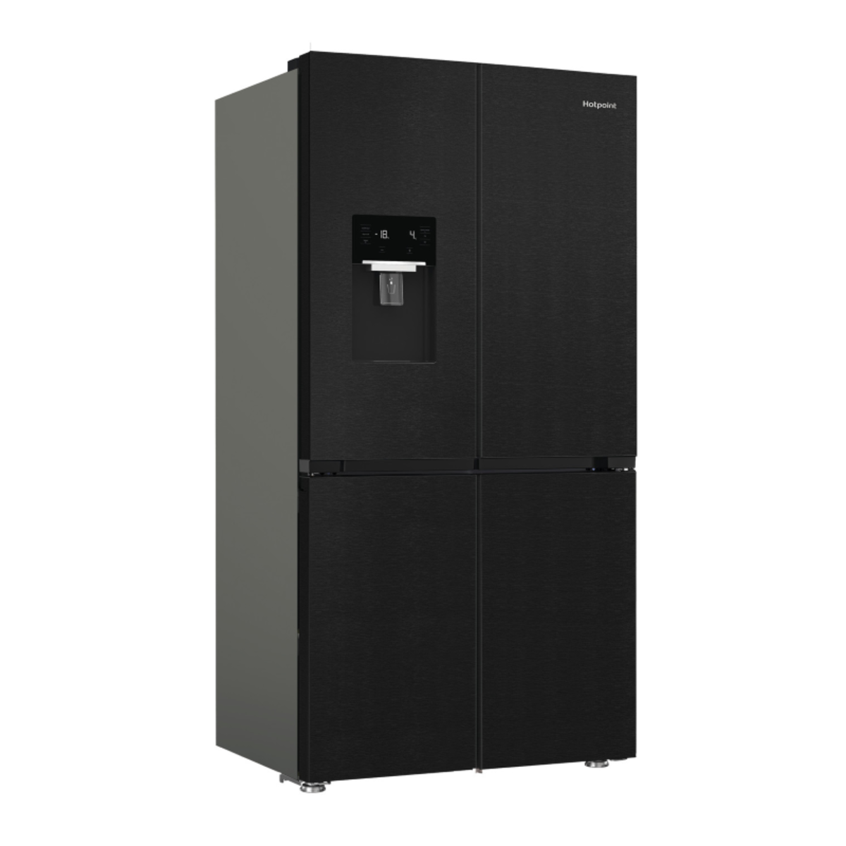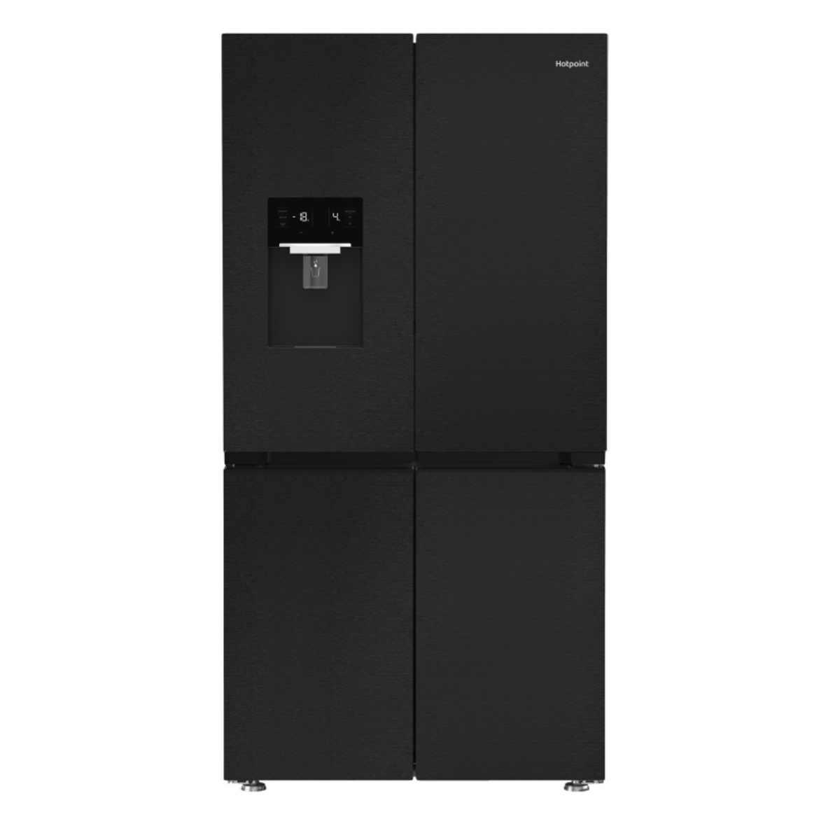 Upgrade your kitchen with this modern Hotpoint American 4-door fridge freezer, featuring a brushed steel finish and an intuitive touchscreen display for effortless control. With an extra-large 572L capacity, it has plenty of space to store around 32 shopping bags of groceries – perfect for growing families or anyone who loves to entertain. Thoughtful tech keeps your food fresh so you can reduce waste. Triple No Frost puts an end to defrosting by preventing ice and moisture building up in both the fridge and freezer sections, while the durable Inverter Compressor quickly and efficiently gets your fridge freezer back to the perfect temperature when the door is opened. In the fridge, the VitalCare drawer recreates the natural daylight cycle to help fruit and vegetables retain nutrients and antioxidants for up to a week*, and the FreshShield drawer helps keep ingredients looking and tasting their best for longer with just the right humidity**. The freezer also come with a Fast Freeze function, to quickly lock in freshness right when you need it. And with the handy Holiday Mode, you can be sure this fridge freezer will run efficiently no matter how long you're away. *Tested by Intertek for fruits and vegetables (blueberry, yellow pepper, tomato, parsley) directly exposed to the light technology compared to a refrigerator without the same technology installed (and compared to Day 0) over a 7-day period while preserved in the crisper. **According to internal tests conducted by Beko Corporate on fresh lettuce, ProFresh crisper technology can preserve freshness longer compared to standard crisper based on the K70561 cabinet.