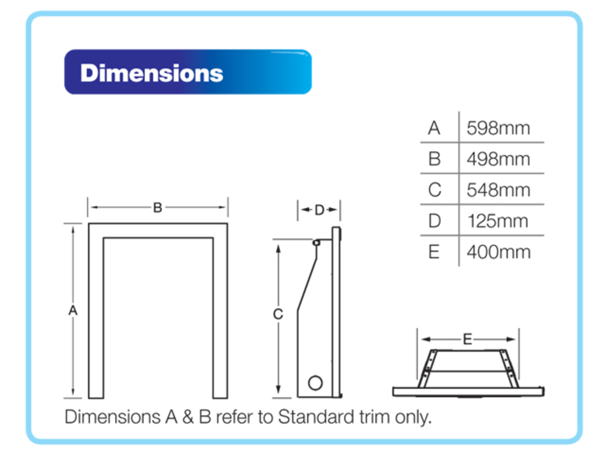 Dimensions - H-59.8 W-49.8 D-12.5