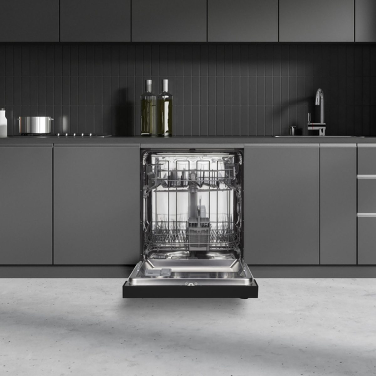 It can hold 12 place settings, and will wash them effortlessly with one of the 7 programmes and 3 temperatures. If you have a small load to be cleaned, it has a clever half-load button so it will use less detergent, water and time.