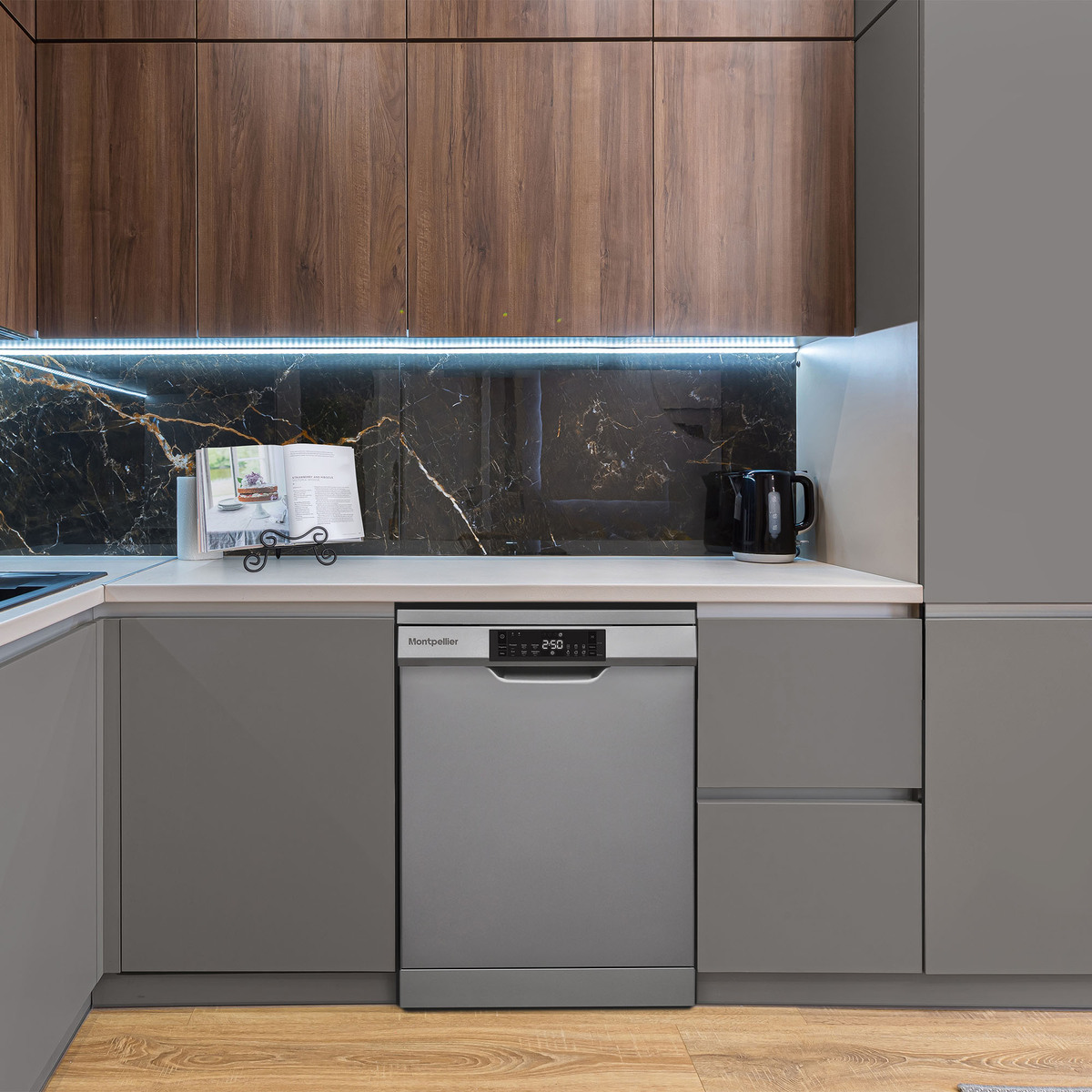 Montpellier MDW1363S 60cm Freestanding Dishwasher in Silver
