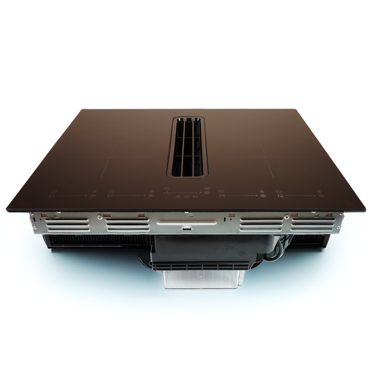 The built-in downdraft extractor pulls steam, smoke, and odours downward at the source, eliminating the need for a separate cooker hood. Ideal for compact spaces or minimalist kitchen designs.