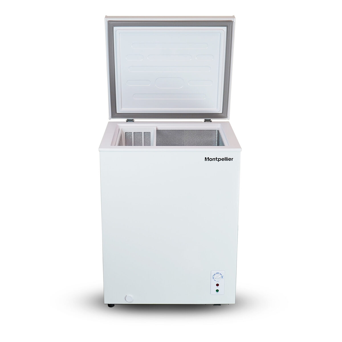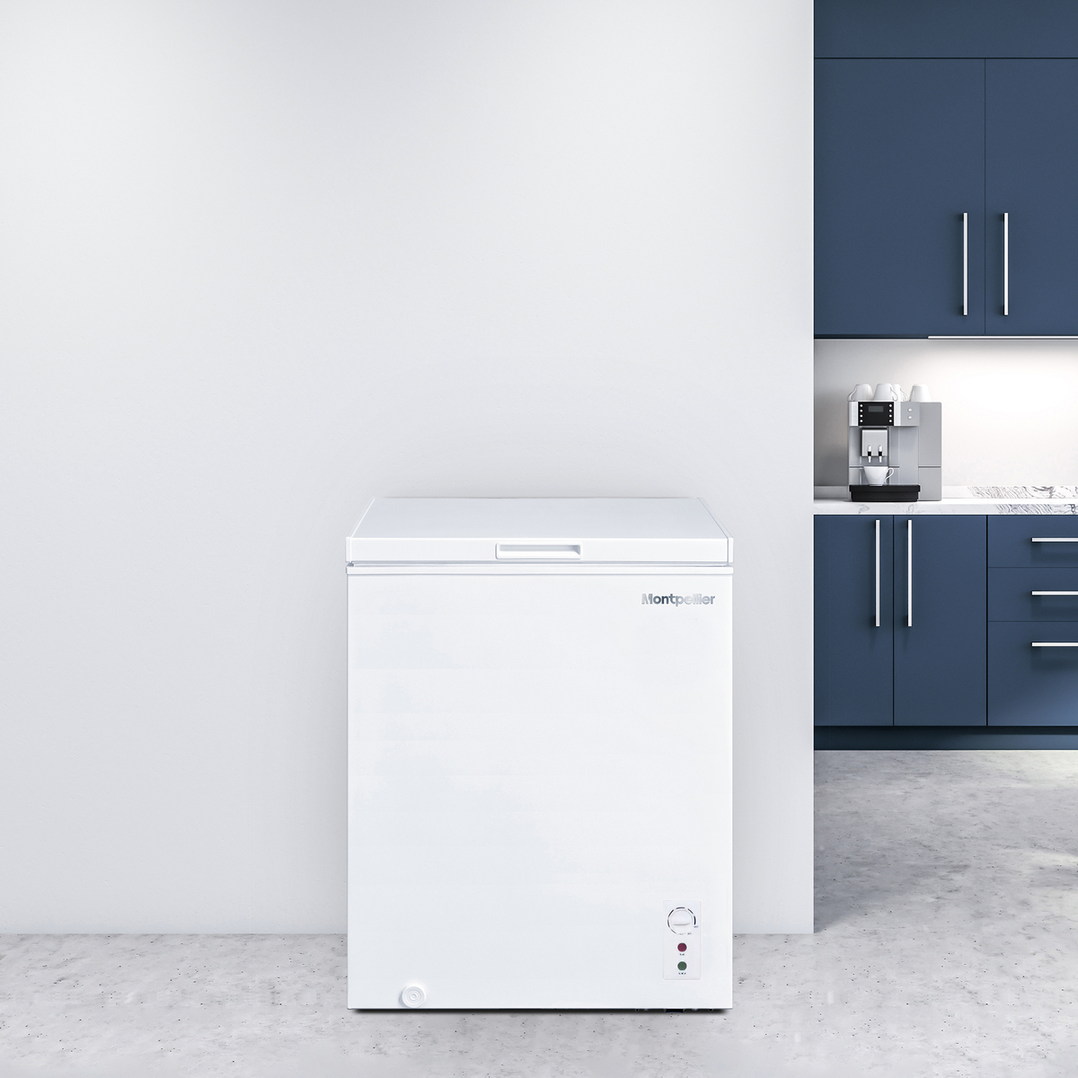 This chest freezer from Montpellier offers 137 litres of storage space and comes complete with a handy storage basket, a counter-balanced lid for safer use, and a wipe-clean interior for easy maintenance.