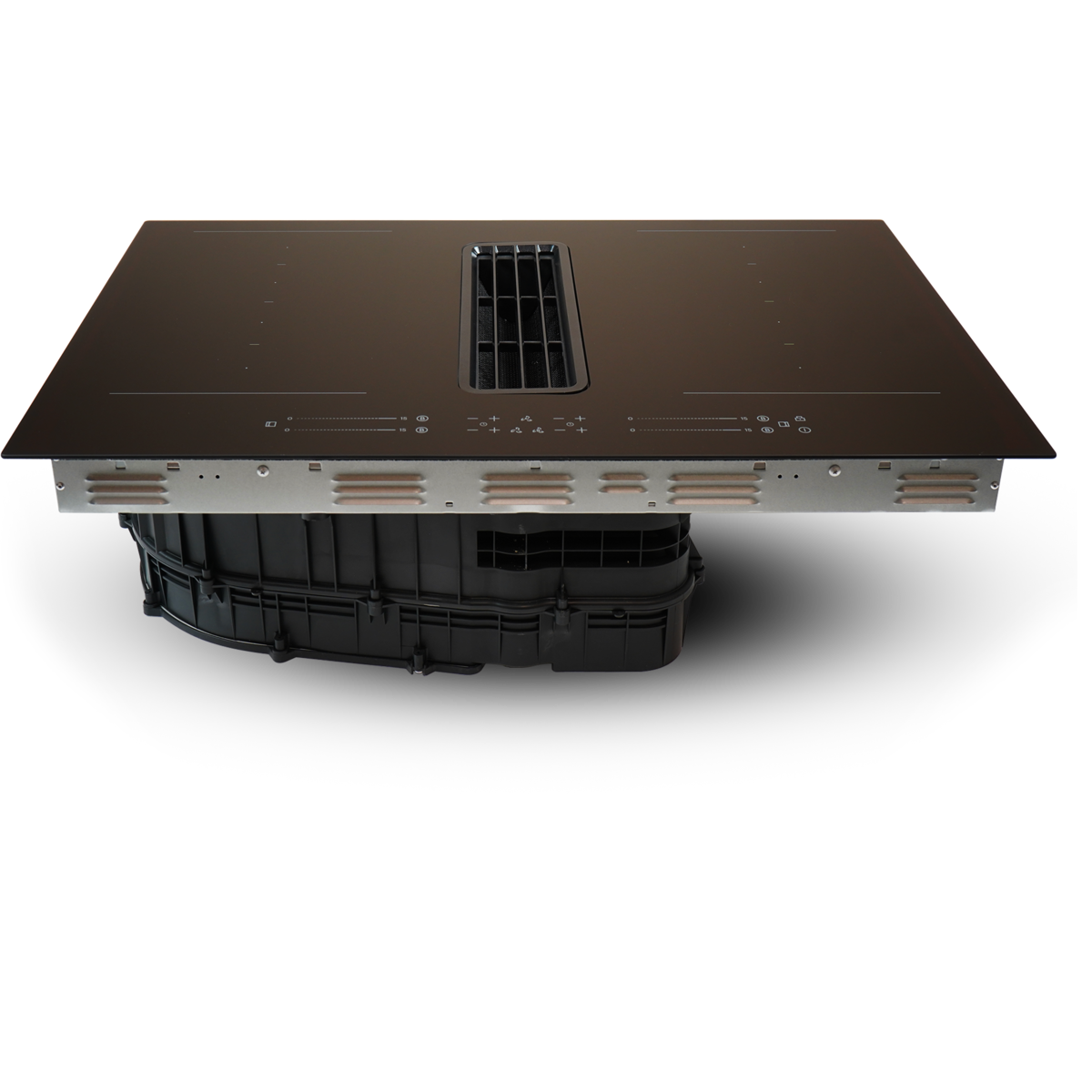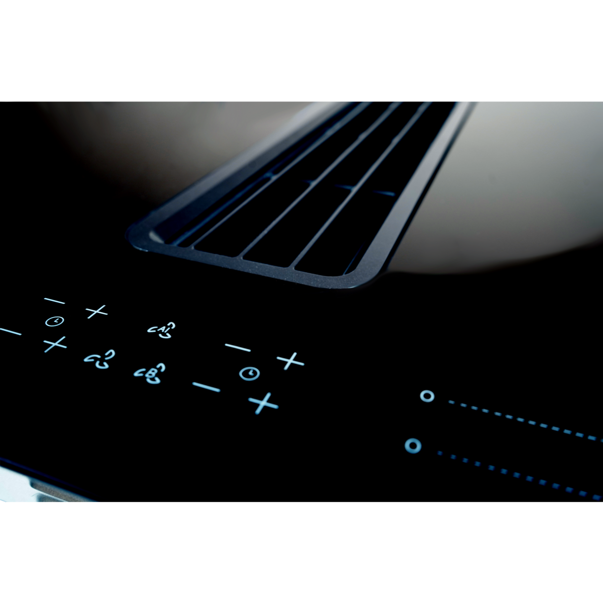 This model features a centrally located downdraft extractor, drawing cooking vapours and odours directly from the pan area. The integrated extraction unit keeps air fresh without the need for a separate hood—perfect for open-plan living or island kitchens.