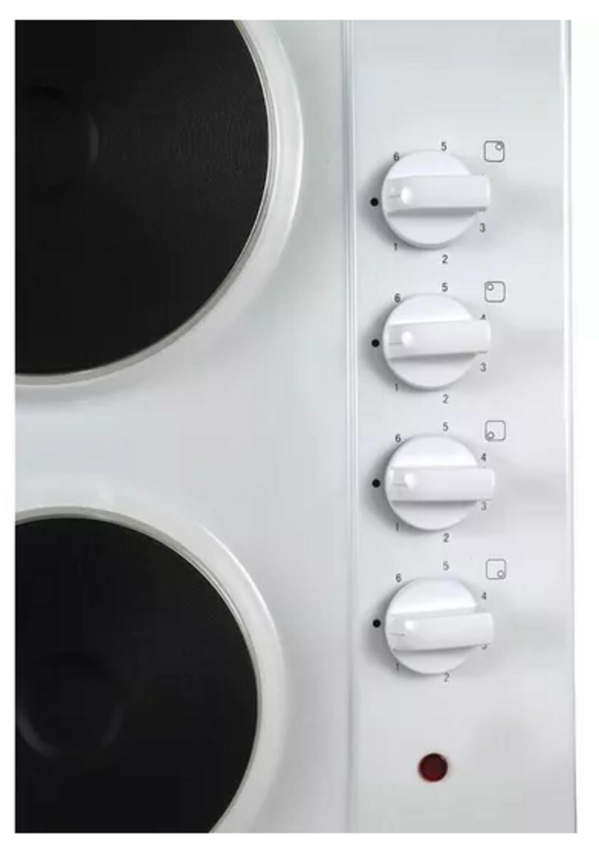 Complete your kitchen with the 60cm 4 Plate Electric Hob in White (EH160WH) from Statesman. Equipped with four solid and durable plates, this hob includes two smaller plates, each delivering 1kW of power, ideal for simmering and light cooking. The two larger plates offer high performance with 1.5kW and 2kW of power each, perfect for boiling and frying.