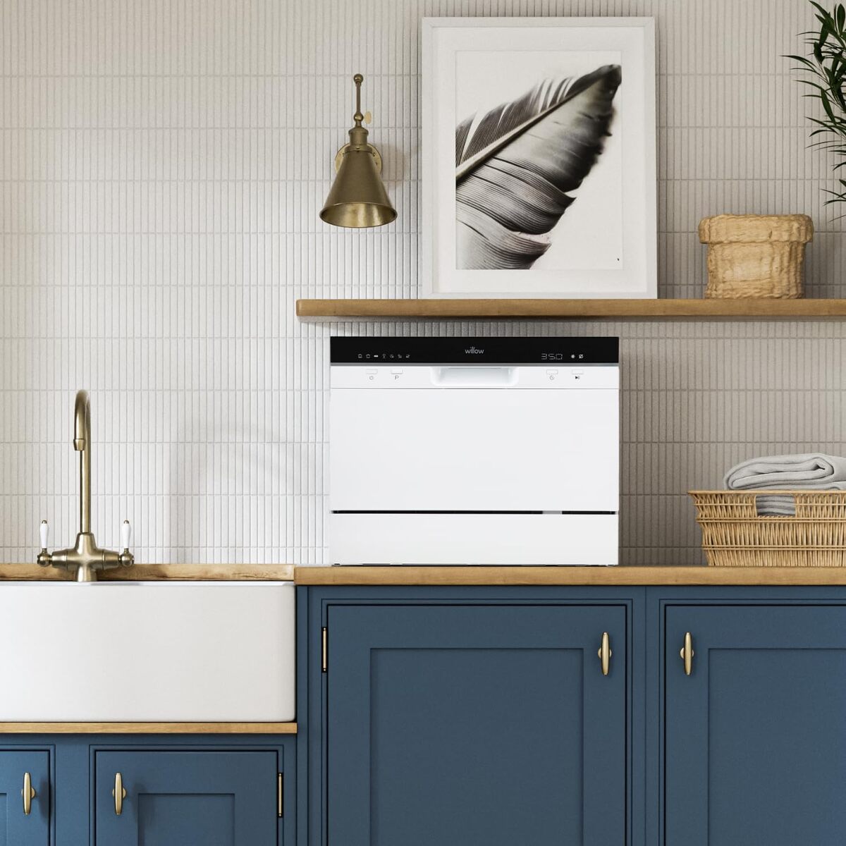 - Compact - Make washing up a thing of the past with this small dishwasher from Willow. With a width of 55cm, height of 43.8mm and depth of only 50cm, it's the perfect size portable dishwasher for smaller spaces such as caravans, rented accommodation and small flats/apartments.